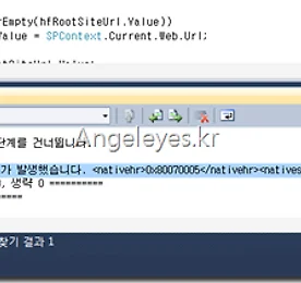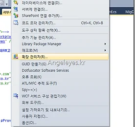 Canon 7D 하드 테스트 캐논 EOS 7D 하드 테스트 동영상 아니 어떻게 이럴수가.. 아래 동영상을 보시면.. 입이 쩍 벌어집니다. 일단.. 던지고. 굴리고... 이단. 물에 빠트리고. 얼리고.. 불로 대우고. 삼단.. 불에 녹이고........... 사진을 찍는데.. 찍힌다..................... 억....................... 이 무슨 말도 안되는...... 이건!!! 무얼 하든 상상이상의 동영상입니다. 일단 보시죠~ 더보기 가정에 있어야 할 공구 종류 및 사용방법 문득 집에 공구세트가 필요해서 이래저래 알아봤습니다. 집에는 어떤 공구가 필요하고… 어떻게 쓰는 걸까요? 제 주관적인 필수 공구는 아래와 같습니다. 1. 드라이버 Filckr에서 퍼온 이미지라.. 제가 생각한 드라이버는 아닙니다. 일단 가정에서 가장 많이 쓰이는 것이 드라이버입니다. 위의 이미지처럼 고정되어 있는 것 보다는 +,-가 하나로 되어 돌려서 사용할 수 있는 하나로 된 제품이 더 괜찮을 것 같습니다. 2. 장도리(망치) 두 번째로 많이 쓰이는 것은 망치 일 것 같습니다. 이왕이면 못을 뽑을 수 있는 망치가 더 좋아 보입니다. 3. 커팅 플라이어 전선 등 절단용 플라이어 입니다. 사용할 때 주의 할 점은 제일 앞부분을 제일 소중하게 다뤄야 하는데요.. 앞 부분으로 전선의 피복을 벗기고 뒤 부분이나.. 더보기 Windows 7 윈도우 탐색기 시작 위치 변경 방법 윈도우 시작 표시줄에 있는 탐색기를 실행하게 되면 기본적으로 라이브러리가 기본 시작 위치입니다. 해당 시작 위치를 변경하는 방법에 대해서 알아보도록 하겠습니다. 탐색기를 실행하면 아래와 같이 라이브러리가 열립니다. 저는 라이브러리를 주로 사용하여 별로 생각이 없었으나, 내 컴퓨터나 내 문서 등으로 변경은 아래와 같이 하시면 됩니다. 먼저 시작 표시줄의 탐색기에서 Shift + 마우스 오른쪽 버튼을 선택합니다. 그리고 속성을 선택합니다. 여기에서 대상을 변경하면 됩니다. 원래는 %windir%\explorer.exe로 되어 있습니다. 기본은 라이브러리입니다. 변경되는 각 항목은 아래와 같습니다. 내 문서 : %windir%\explorer.exe /e 내 컴퓨터 : %windir%\explorer.exe .. 더보기 KT 와이브로(Wibro) 에그(EGG) 실시간 요금 확인(사용량 확인) 방법 모바일에서 확인하고자 하시는 분은 아래 링크에서 확인하여 주시기 바랍니다.2012/09/26 - [Products/ETC] - KT 올레 와이브로(Wibro) 에그(EGG) 실시간 요금 확인(사용량 확인) 방법 - 모바일(안드로이드,아이폰,아이패드) 그리고 웹에서 확인하고자 하시는 분은 아래 링크에서 확인하여 주시기 바랍니다.2012/09/26 - [Products/ETC] - KT 올레 와이브로(Wibro) 에그(EGG) 실시간 요금 확인(사용량 확인) 방법 - 웹 아래 내용은 올레 홈페이지 UI가 변경되면서 더이상 참고할 수 없습니다.감사합니다. 2012-09-26 By Angeleyes.. 아직 kt에서는 와이브로 요금에 관한 어플을 내 놓을 생각은 없는 것 같습니다. 뭐.. 제가 아직 잘 몰라서 .. 더보기 KT Wibro 스트롱 에그(KWD-B2600) 활용방법- Olleh WI-FI Zone 사용하기 저는 SKT 통신사를 이용하고 있습니다. SKT도 Wibro가 있으나, 성능 및 브릿지(에그)의 동작 유휴 시간이 짧은 관계로.. 돈을 더 주고! KT 에그를 구입하게 되었습니다. 구입하면서 또 하나의 장점 Olleh WIFI Zone을 사용 할 수 있는 최고의 장점이 있습니다. 에그를 구입하고 등록하게 되면 바로 Olleh WI-FI zone을 이용할 수 없습니다. 오늘은 그 활용방법에 대해서 설명하고자 합니다. 먼저. 에그를 구입하고 Wibro 상품에 가입합니다. 이때 Olleh Shop을 이용하지 않고 대리점에서 가입하게 되면 대리점에서 신청 시 WI-FI도 같이 가입시켜 주세요 하면 됩니다. 그렇지 않고 올래샵이나 혹은 대리점에서 그냥 와이브로 가입만 하고 온 경우에는 100번에 전화하여 WI-F.. 더보기 Visual Studio 2010 추천 확장 갤러리 - Search References Visual Studio 2010 (이하 VS2010)에 꼭 설치하는 확장 프로그램이 있습니다. 그 중 첫 번째로 dll 참조 추가 할 때 꼭 필요한 확장 프로그램인 Search References에 대해서 소개해 드리려고 합니다. 먼저 VS2010을 실행 시키시고. 그리고 상단 메뉴에서 도구 –> 확장 관리자를 선택합니다. 그리고 좌측의 온라인 갤러리를 선택한 후 검색합니다. Search References 위 화면에서는 제가 먼저 설치하여 다운로드 버튼이 없습니다. 처음이신 분은 다운로드 버튼이 나옵니다. 다운로드 버튼을 눌러서 설치하시면 됩니다. 그리고 VS2010을 재 시작하시고 프로젝트에서 참조추가를 하시면 아래와 같은 화면을 볼 수 있습니다. VS2010에서는 dll 이름 sort가 안되어서 .. 더보기 Sharepoint Error Message(에러 메시지) 확인 방법 [web.config 수정 방법] Sharepoint에서 에러가 발생되면 아래와 같은 화면에 출력 됩니다. 위 메시지 확인 방법은 아래 링크에서 확인 할 수 있습니다. 2012/01/05 - [Developer/Troubleshoot] - Sharepoint Exception Message(Error 로그) 확인 하는 방법 [부제:예기치 않은 오류가 발생했습니다.] 만약 서버가 아닌 개발용 피시에서는 이런 메시지보다 직관적인 에러 메시지가 필요합니다. 해당 메시지 출력 방법으로 가장 간단한 방법은 VS2010에서 F5를 눌러 디버깅 모드로 배포하게 되면 Web.config 파일을 수정하여 디버깅 모드로 볼 것이냐고 물어봅니다. 예를 하여 디버깅 모드로 들어가면 가장 빨리 메시지를 